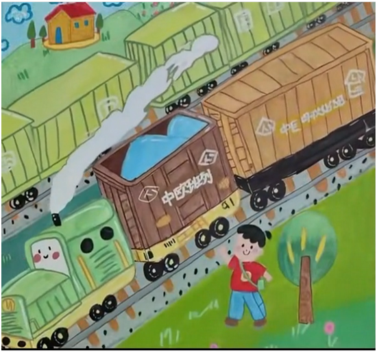 河北省承德市世纪城小学段茜雯绘制《中欧班列》。